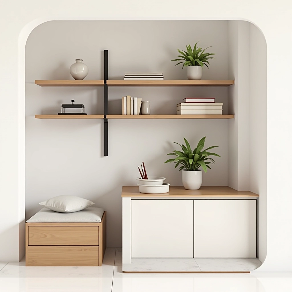 Discover how to use walls effectively. We'll cover floating shelves, wall-mounted units, and open shelving arrangements that work in small apartments.